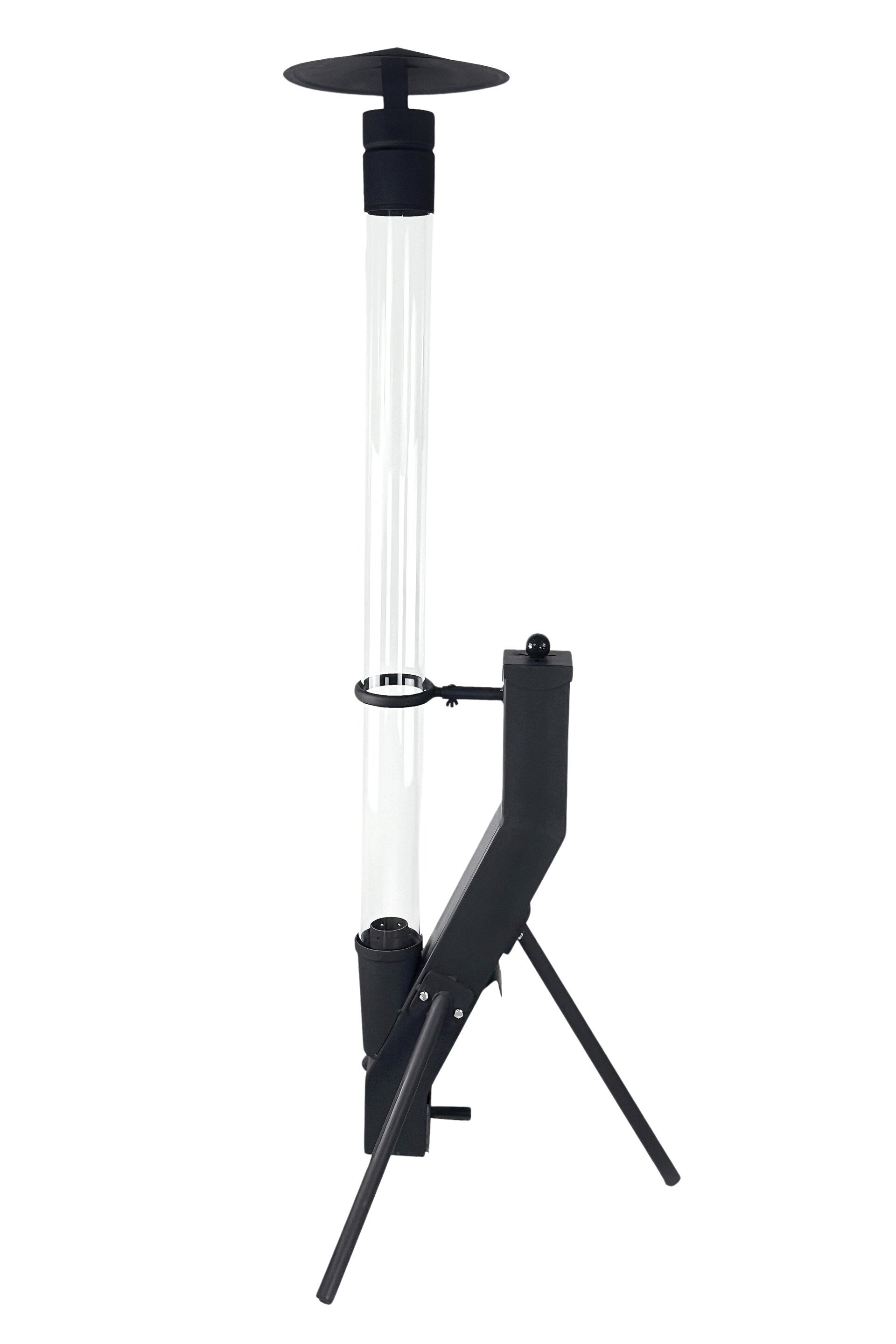 De kachel staat stevig op een driepoot, waardoor hij ook op een minder egale ondergrond stabiel blijft staan. Met een hoogte van 1,78 meter en een gewicht van 15 kilo is de Spin pelletkachel ontworpen voor duurzaam en langdurig gebruik. De 1,20 meter hoge glazen buis vormt het middelpunt van de kachel en zorgt voor een rustig, sfeervol vlammenspel.